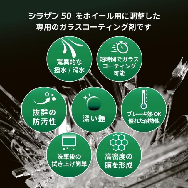シラザン50 ホイールコートはブレーキダストの固着を防ぎ、洗車を劇的に楽にする、超強力なプロ仕様のホイール専用コーティングです。