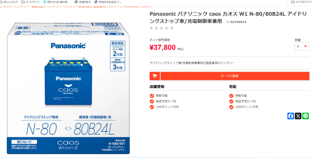 オートバックスの公式通販サイトではカオスN-80バッテリーの価格が37800円税込み。※2025年11月調べ