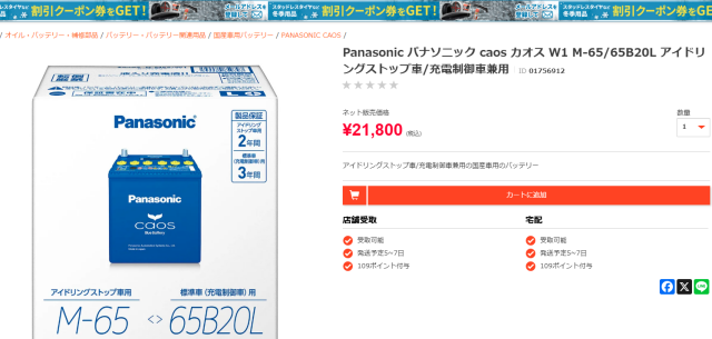 オートバックスの公式通販サイトではM-65バッテリーは21800円税込み。工賃は別途。店舗でも同じ値段だと思います。※2025年10月時点の価格です。